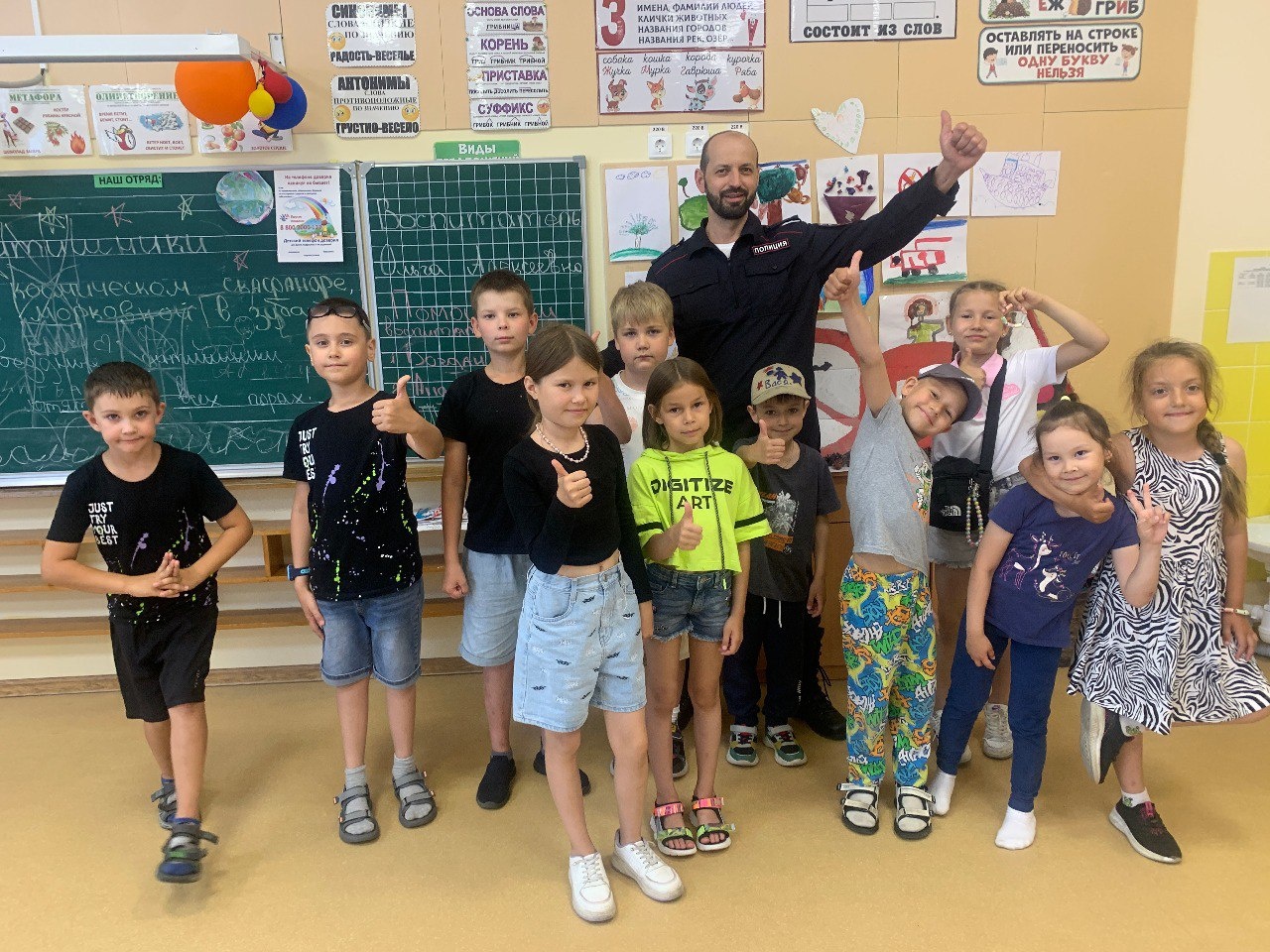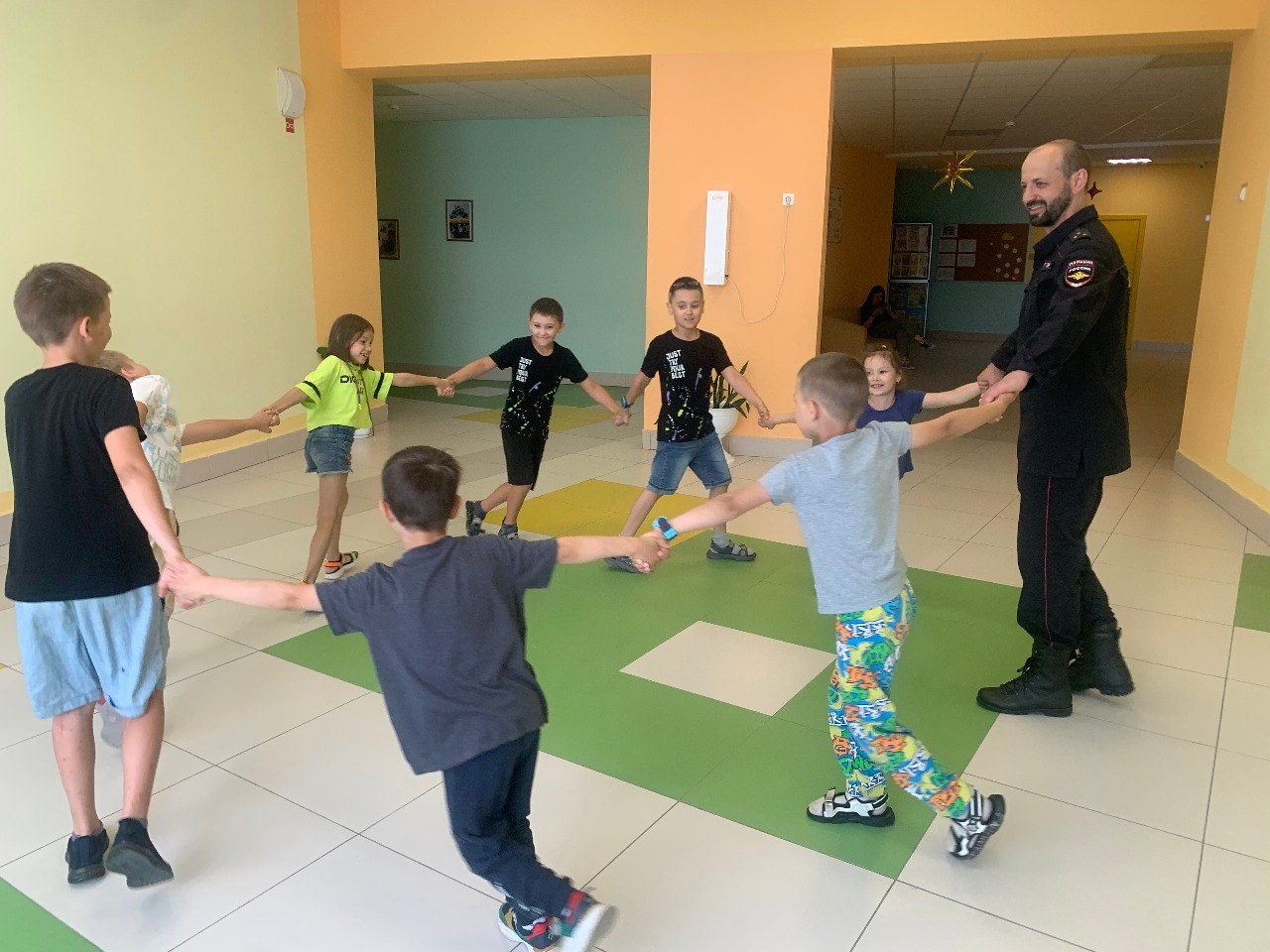 Спортивный праздник был посвящён предстоящему Дню физкультурника. Зарядку для ребят провел старший лейтенант полиции Ростислав Яковлев – спортсмен со стажем, обладатель звания «Чемпион России» по тхэквондо, имеющий черный пояс по этому виду спорта. Ростислав в свое время был детским тренером, сейчас выступает на соревнованиях в качестве судьи, возглавляет аттестационную комиссию юных спортсменов. Страж порядка показал ребятам самую полезную утреннюю разминку для бодрости духа на целый день. Ростислав также ответил на многочисленные вопросы ребят, рассказал о том, что занятия спортом не только укрепляют тело, но и учат выносливости, развивают интеллект. А ещё спортивный опыт будет просто необходим для учебы и службы в органах внутренних дел.