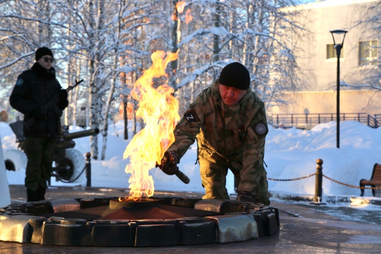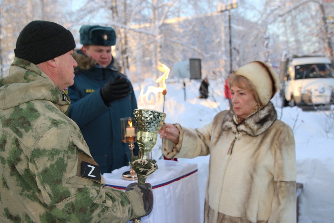 Право произвести слияние огня предоставили узнику концлагеря Нелли Ивановне Макаренко и ветерану боевых действий, участнику СВО Андрею Блинову.