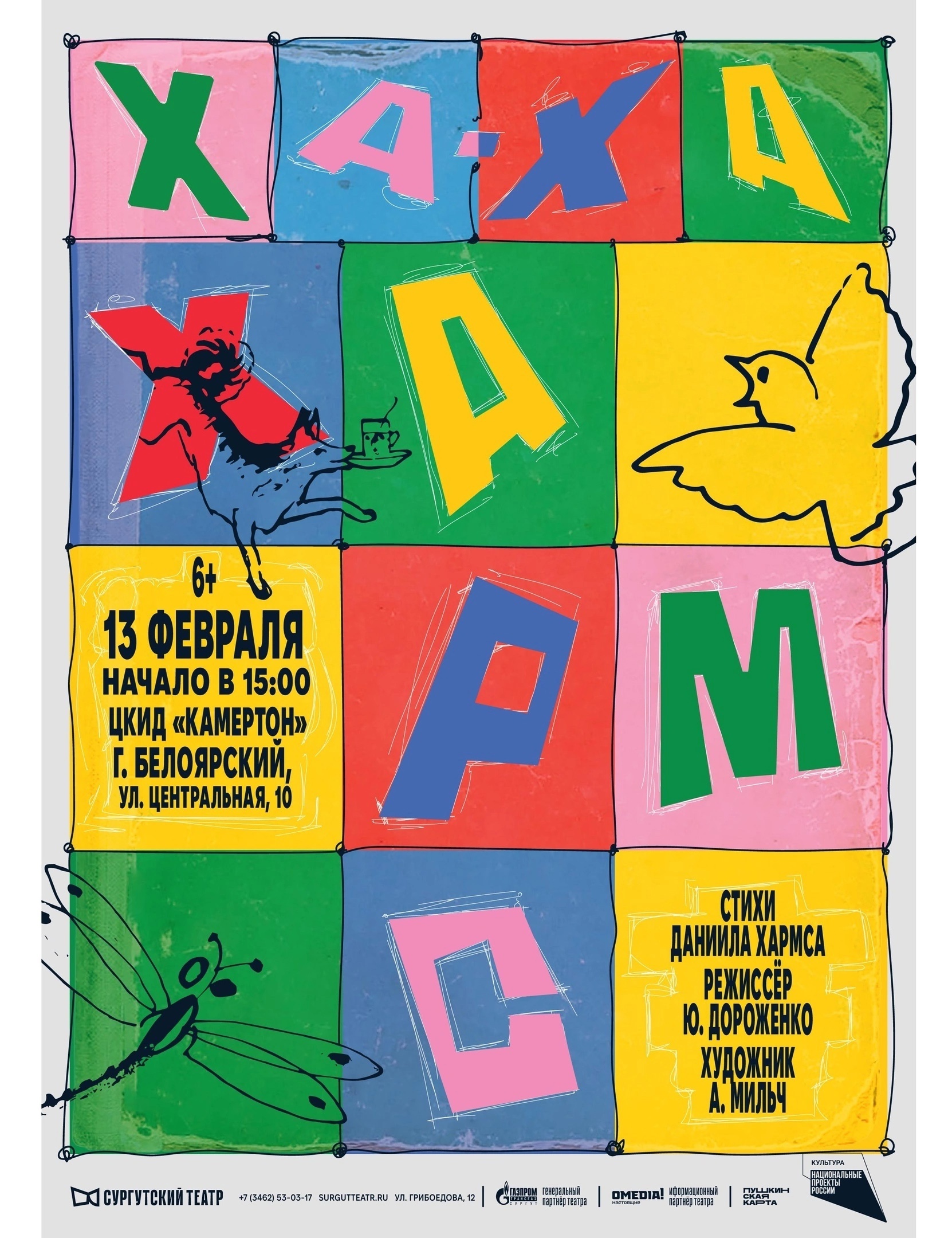 — 13 февраля: спектакль «Ха-Ха-Хармс» (Сургутский музыкально-драматический театр).