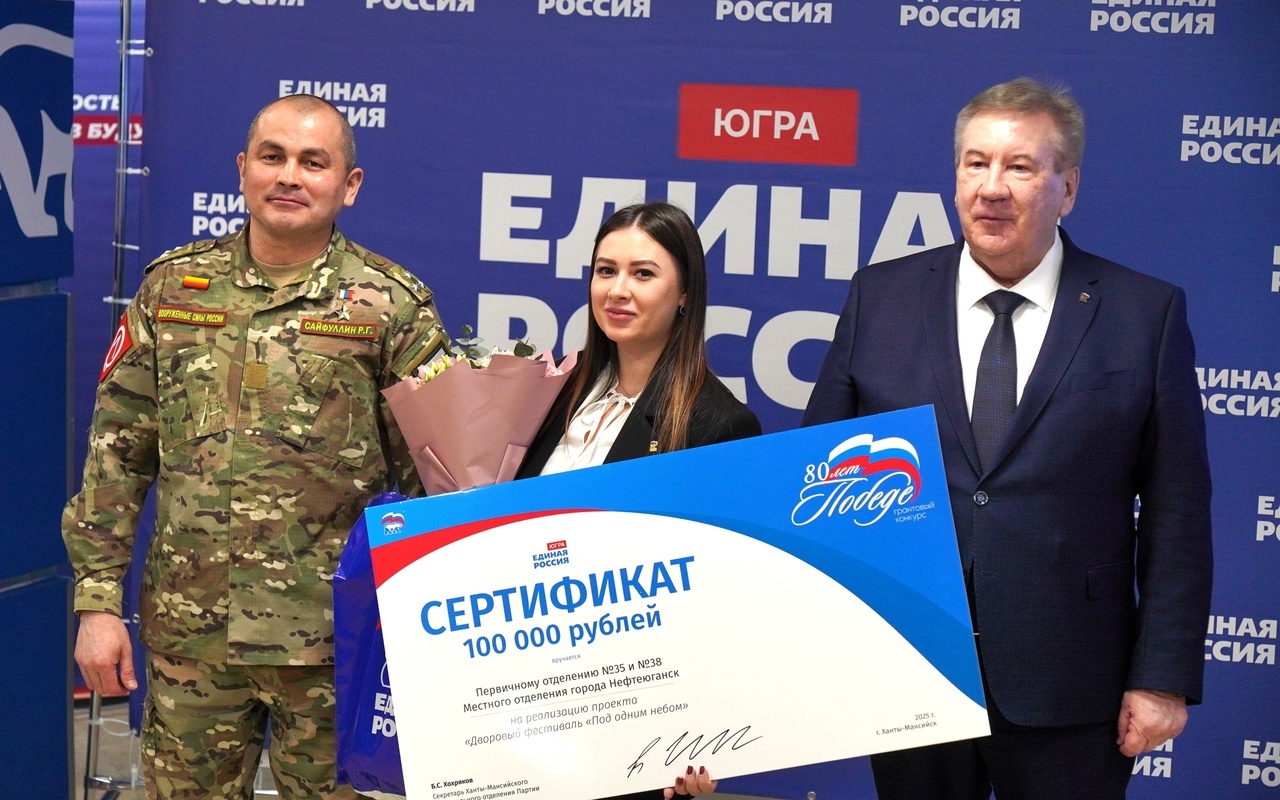 Мероприятие состоялось на площадке штаба общественной поддержки партии в Ханты-Мансийске. Очно и по ВКС оно объединило представителей всех муниципалитетов автономного округа.Секретарь Ханты-Мансийского регионального отделения «Единой России», Председатель Думы Югры Борис Хохряков вместе с членом Высшего совета партии и Центрального совета сторонников «Единой России», Героем Российской Федерации, полковником Рустамом Сайфуллиным наградил призёров и победителей грантового конкурса среди первичных отделений «80 лет Победе».