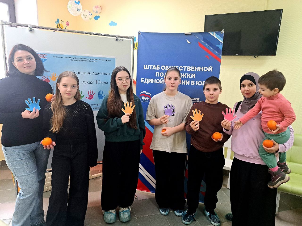 В детской поликлинике Белоярской районной больницы в очередной раз прошла добрая акция Женского движения "Единой России" - "Детские ладошки V руках Югры".Мероприятие направлено на поддержку детей, чьи родители находятся в зоне специальной военной операции, а также ребят из многодетных семей. Более 20 ребят сегодня стали участниками акции.
