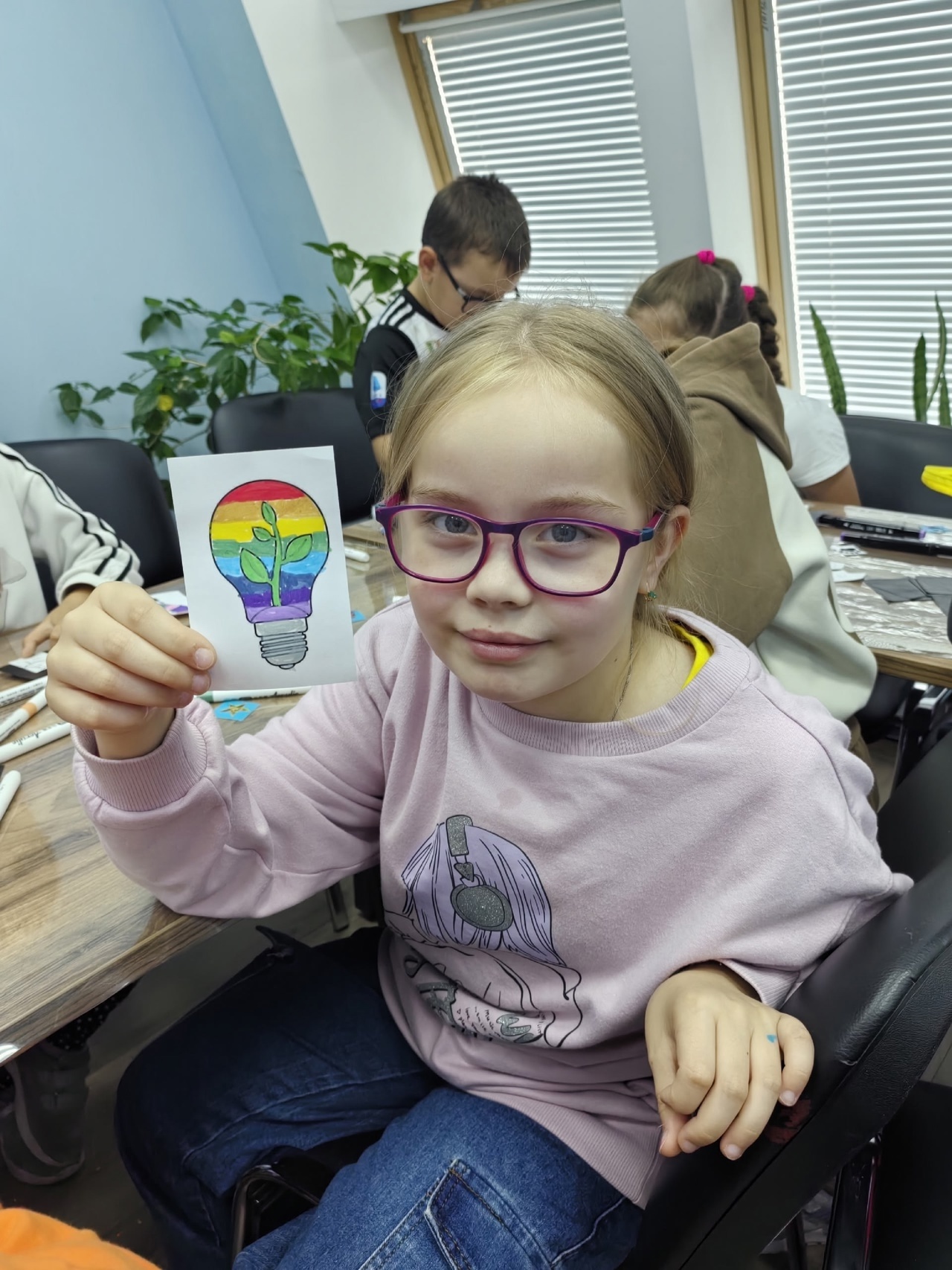 Важной частью мастер-класса стали эксперименты с энергией. Дети разбирались, откуда берется электричество и почему его нужно экономить. Им показали, как работают альтернативные источники – солнечные панели и ветрогенераторы. Самой творческой частью стал эксперимент по созданию «лампочек счастья» – символов бережного отношения к ресурсам, которые ребята мастерили своими руками.