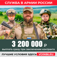 Напомним, в Ханты-Мансийском автономном округе предлагаются лучшие условия при заключении контракта на службу в ВС РФ в стране. При заключении контракта в Югре боец получает единовременно 3 200 000 рублей. Денежное довольствие военнослужащих за 12 месяцев службы составит от 5 720 000 рублей. Подробнее о службе по контракту в Югре – на сайте voin86.ru