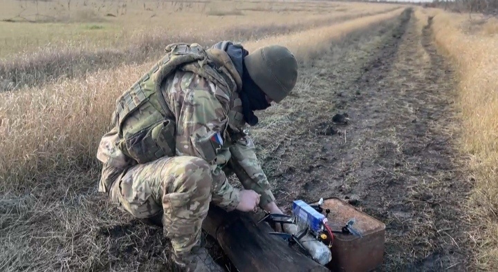 – Одного заряда достаточно, чтобы «разобрать» блиндаж ВСУ. А зарядами с нами делится машина разминирования – УР-77 «Метеорит», в простонародье «Змей Горыныч». Вместо орудия внутри установки уложен специальный шнур с пластидом – очень мощным взрывчатым веществом. Шнур взрывается, и вместе с ним детонируют мины. Вот с помощью это шнура, «колбасы» по-нашему, мы и готовим снаряды для ударных дронов, – говорит «Дракон».