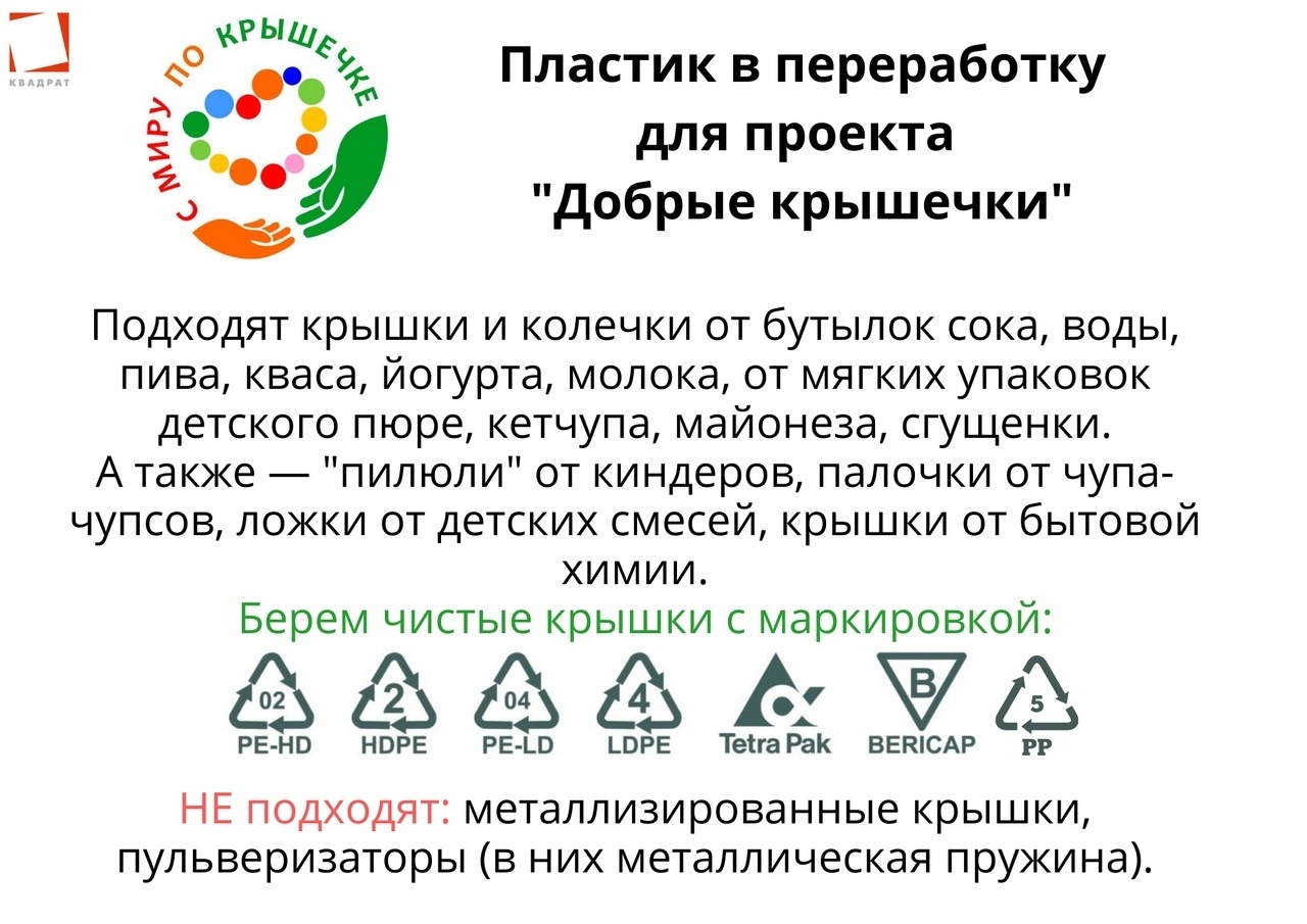 Напомним, что Белоярский район присоединился к проекту с конца 2020 года. "Добрые крышечки" — всероссийский эколого-благотворительный проект. Он нацелен на помощь детям с особенностями развития. Суть в том, чтобы использовать средства, собранные от утилизации и переработки крышечек, для адресной помощи детям с ограниченными возможностями здоровья.