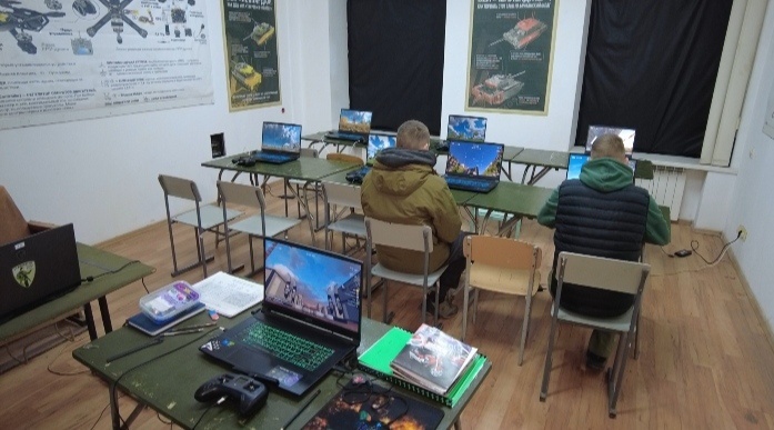 В кабинете – несколько современных ноутбуков с программами – симуляторами полета БПЛА. На стенах – учебные пособия. Здесь отрабатывают в том числе физико-моторные навыки работы пальцами. Бойцов учат так работать с «птичками», как будто дрон – это продолжение тебя самого. Чем ювелирнее работа, тем результативнее полет и точнее выполнение боевого задания. Парням, которые пришли учиться на операторов БПЛА, конечно, сначала сложно.